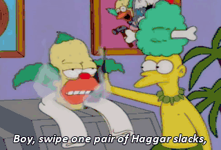 Boy, swipe one pair of Haggar slacks, and you're payin' for it the rest of your life. I finally got around to reading the dictionary. It turns out the zebra did it.