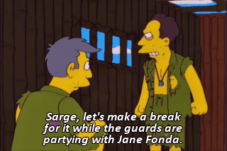 Sarge, let's make a break for it while the guards are partying with Jane Fonda.