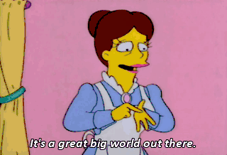 It's a great big world out there. Been there, done it. I know. We could have a tea party on the ceiling. Shh-- TV. Oh! You people will be the death of me.