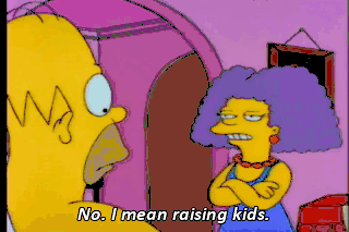 No. I mean raising kids. I just couldn't cut it today. All I wanted was a little version of me... that I could hold in my arms. Oh, jub jub.