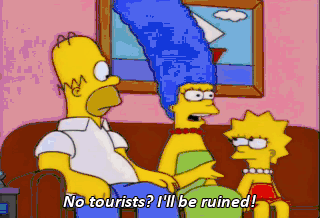 No tourists? I'll be ruined! Maps to movie stars' homes! Excuse me. Are you Drew Barrymore? What? Get out of here! I'm hungover!