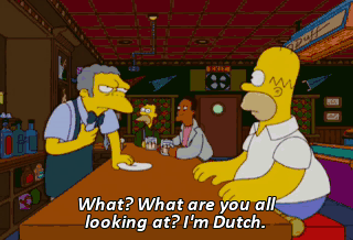 What? What are you all looking at? I'm Dutch. Ah, forget all of you. (CLOMPING)