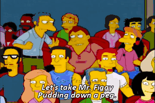 Let's take Mr. Figgy Pudding down a peg. Otto, what are you waiting for'? Get your ass on my neck. I'm gettin' close. I smell vinaigrette. Heads up, Dad. Here comes the scum. Tsk, tsk, tsk, tsk.