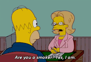 Are you a smoker? Yes, I am. You don't smoke! (SHUSHING) I want her to think I'm cool!