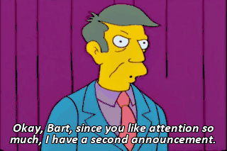 Okay, Bart, since you like attention so much, I have a second announcement.