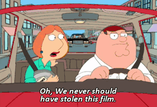 Oh, We never should have stolen this film. Oh, Man, this is even more intense than that time I forgot how to sit down. Don't worry, Lois. I think I know how to lose them.
