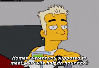 Homer, werent you supposed to meet your wife half an hour ago? Cyohl You guys dont have a gay time machine, do you? Yes. ts called Grad/s shoe closet. Hey, Julio? Ouch. I gotta gol