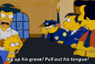 Dig up his grave! Pull out his tongue! Can't we have one meeting that doesn't end with us digging up a corpse?