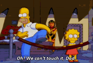 Oh! We can't touch it, Dad. It's behind a velvet rope. A velvet rope. Lisa, you can't go this far and then not go further.