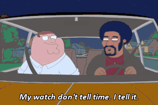 My watch don't tell time. I tell it.