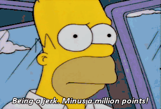 Being a jerk. Minus a million points! D'oh! One more wrong answer, and Homer flunks another of life's little tests. And what's this? Oh.