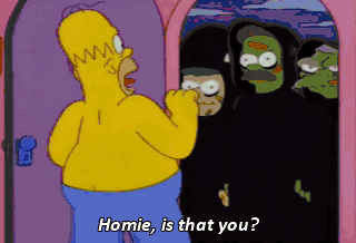 Homie, is that you? Marge, kids, you're alive! All the layers of lead paint in this house made it the perfect bomb shelter. Ohhh, come here. Kinda brings a tear to your eye socket.