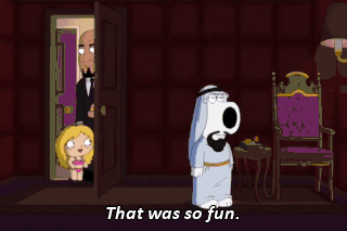 That was so fun. How do you be paying? Oh, I don't have any money. Can we work it out, maybe some other way? Wait a minute. Something doesn't smell funny here. You're not Arab! You two are coming with me.