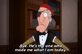 Aye. He's the one who made me what I am today. (SIGHS) I wish you were a real, live ornery sea captain.