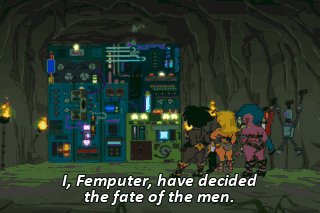 I, Femputer, have decided the fate of the men. Femputer sentences them to death... by snu-snu!