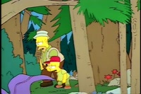 The first thing you learn about surviving in the woods, boy: conceal your nakedness. Yeah, man. Okay. Slap a fern on there, boy. And now with some mud. There. Ooh ! That requires a little moss.