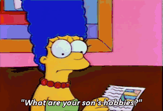 "What are your son's hobbies?" He's always chewing on that phone cord. He hasn't done that since he was two. Then he has no hobbies. Oh, really? Maybe you should go out to the garage and see. Bart. Bart!