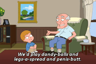 We'd play dandy-balls and legs-a-spread and penis-butt. Sounds kind of gay, Grandpa.
