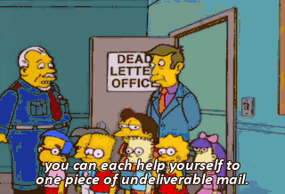 you can each help yourself to one piece of undeliverable mail. I'll take you. I got some dog food!