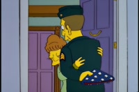 It's your funeral. Miss Hoover. Bart, why are you doing that? Our class is making refreshments for Skinner's party. These are in honor of his army days. That explains the flags.