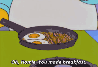 Oh, Homie. You made breakfast. Nothin's too good for my one and only. Eat! Eat! You're nothing but skin and bones. Ah-choo! How are you feeling, sweetie?