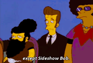 except Sideshow Bob. But, in the midst of our sorrow, we can take comfort in the fact that your elevated blood-alcohol level...