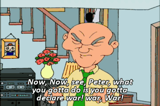 Now, Now, see, Peter, what you gotta do is you gotta declare war! war, War!