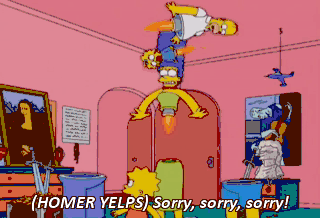 (HOMER YELPS) Sorry, sorry, sorry! (CLICKING) (EXCLAIMS IN FRUSTRATION)