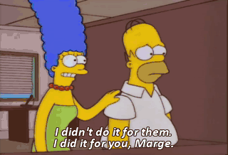 I didn't do it for them. I did it for you, Marge. I'd kill for you. - Please ask me to kill for you. - No, Homie. You see? You see, this is the stuff I've been telling you about that you never see.