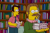 Dad's gonna catch Flanders, just like the end of Mom's book! Oh, yeah. How does that go again? Ugh! Didn't you read Mom's book? Fine! I'll tell you how it ends.