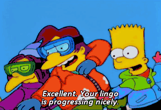 Excellent. Your lingo is progressing nicely. Can I go to the bathroom? Uh-uh! Say it in snowboard. Um, I gotta blast a dookie. Dook on!