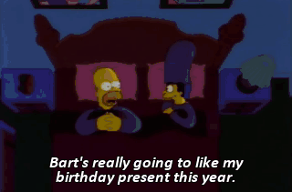 Bart's really going to like my birthday present this year. It won't be like those shoe trees I got him last year or the shelf paper I bought him for Christmas.