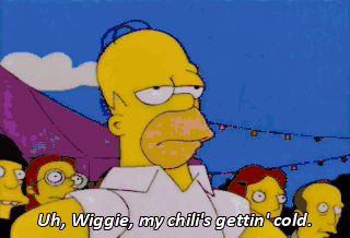 Uh, Wiggie, my chili's gettin' cold. Hot! Hot!
