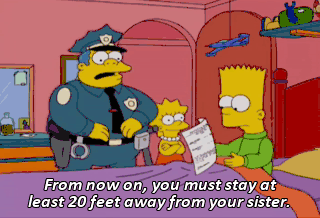 From now on, you must stay at least 20 feet away from your sister. Restraining order? Bull spit.