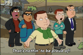That's nothin' to be proud of! Don't be stupid! She speak good and everything! Let's get him! Throw him out! Wait! We can work this out!