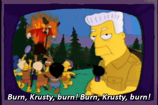 Burn, Krusty, burn! Burn, Krusty, burn!