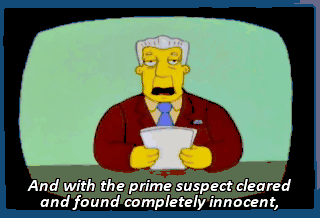And with the prime suspect cleared and found completely innocent,