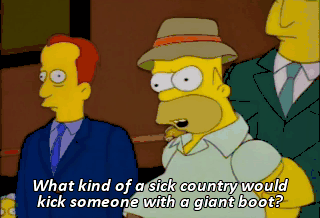 What kind of a sick country would kick someone with a giant boot?