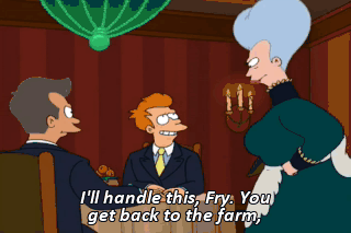 I'll handle this, Fry. You get back to the farm, shift some paradigms, revolutionize outside the box.