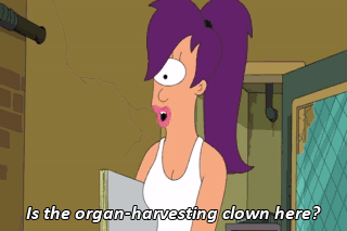 Is the organ-harvesting clown here? Nah, Rusty comes on Tuesdays now.