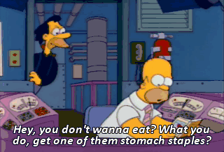 Hey, you don't wanna eat? What you do, get one of them stomach staples?