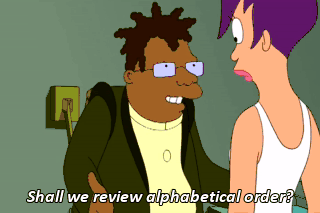 Shall we review alphabetical order? A, B, C, D... Get out of my office!