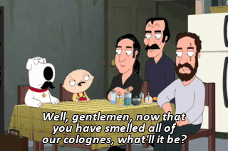 Well, gentlemen, now that you have smelled all of our colognes, what'll it be? I will take some Drakkar Noir. (BEEPS) How about you? I am disgusting, so I will take two bottle Drakkar Noir.