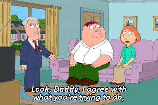 Look, Daddy, I agree with what you're trying to do, but I just don't think this is gonna work. It's so artificial. You're asking for a spanking, young lady. Yeah! QUAGMIRE: All right!
