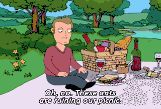 Oh, no. These ants are ruining our picnic. You mean this picnic is ruining our ants. Look around your world, pretty baby Is it everything you hoped it'd be?