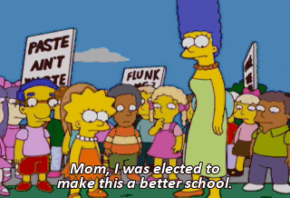 Mom, I was elected to make this a better school. Well, couldn't you just hang some colorful crepe paper in the gym?