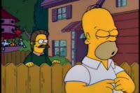 I think that's terrible. A man opens his heart and you make fun of him. "Neighbors forever--" Oh, no ! "Ned Flanders." What a sap ! Read the "bosom" part again, Dad.