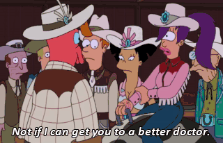 Not if I can get you to a better doctor. We'll have to hurry, he doesn't have much time! (DR. ZOIDBERG GRUNTING) (POPPING)
