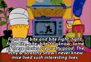 Fight and bite and bite Fight, fight, fight Bite, bite, bite You know, some of these stories are pretty good. The itchy & Scratchy Show I never knew mice lived such interesting lives.