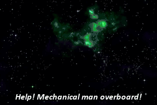 Help! Mechanical man overboard! Go after him, Leela! It's no use. We were going full speed when we fired him. So he's going even faster than that!